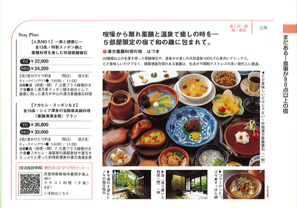 じゃらんクチコミ90点以上!泊まって良かった宿2021~2022西日本版にて、はづ木をご紹介頂いております。