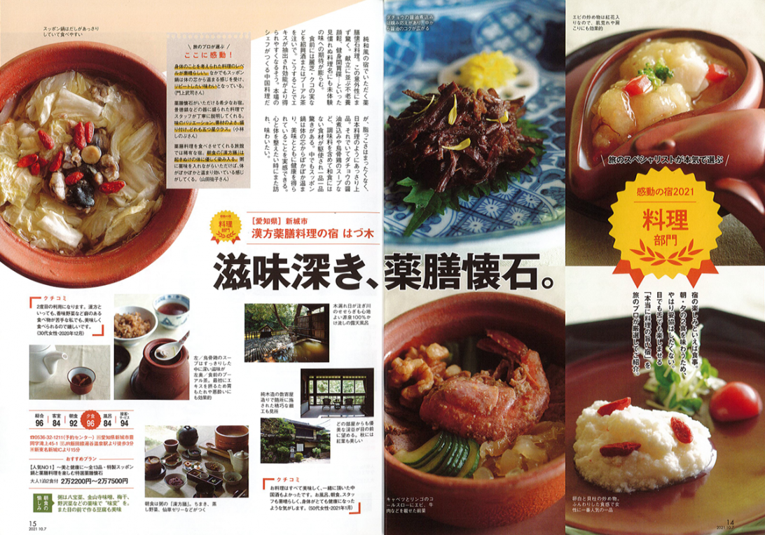 じゃらんクチコミ90点以上!泊まって良かった宿2021~2022にてはづ木が料理部門に掲載されました。